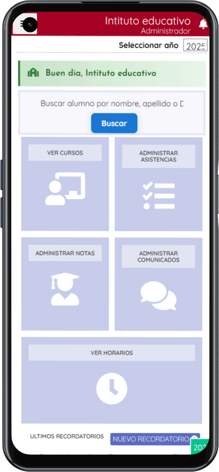 En este módulo van a poder administrar la escuela o instituto 100% online sin preocuparse de nuevas actualizaciones y backups de base de datos.